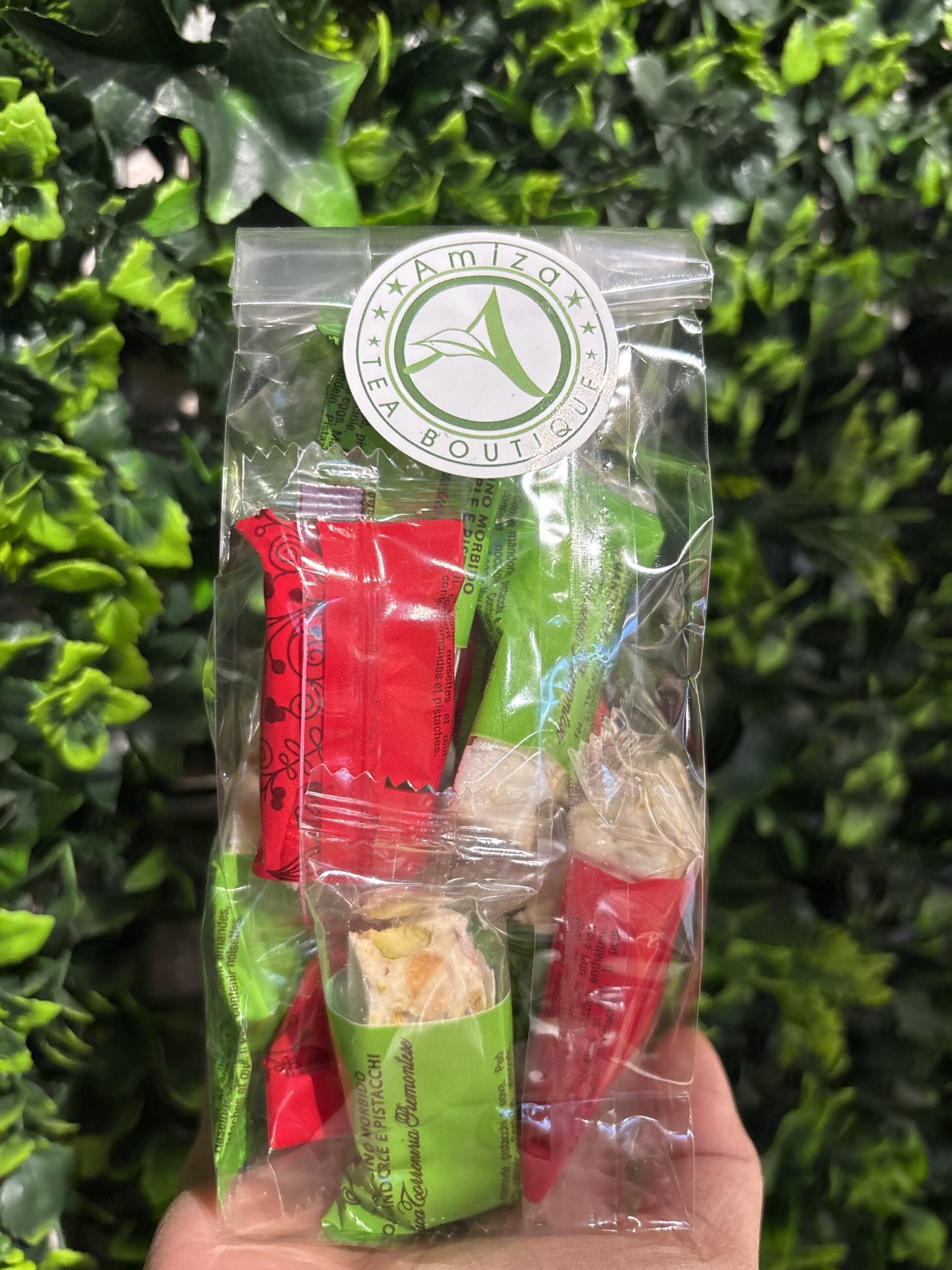 INGREDIËNTEN: Hazelnoot, pistache, honing, suiker