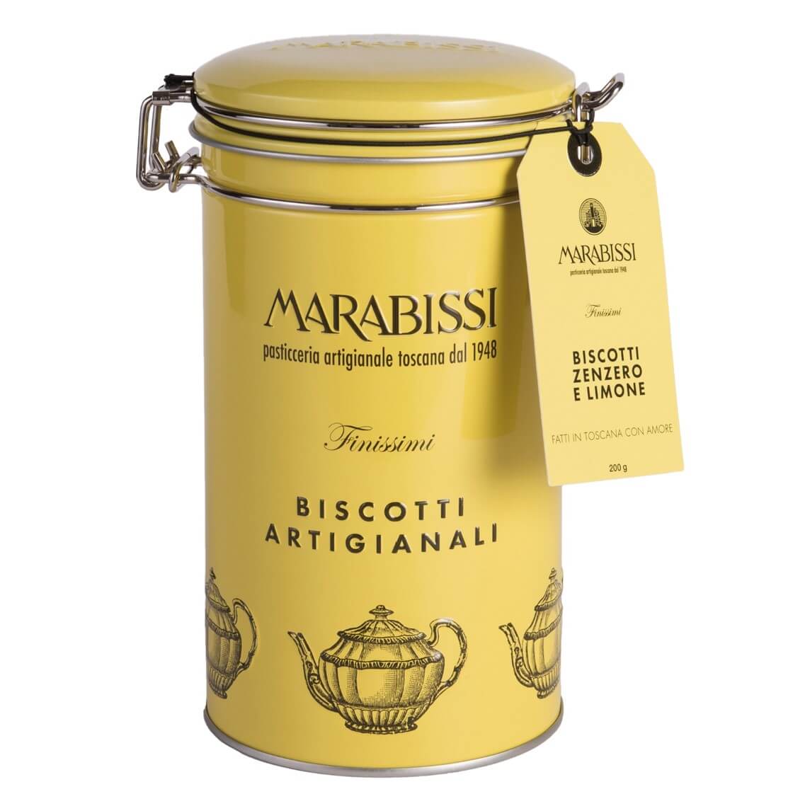 Heerlijke ambachtelijke koekjes met Gember en Citroen, verpakt in citroengeel blik met beugelsluiting